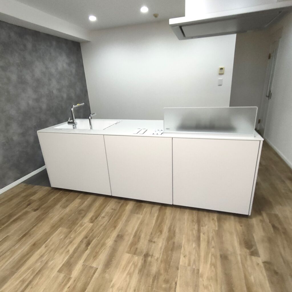 リビングルームをアイランドキッチン&アクセントクロスに貼り換え②」
